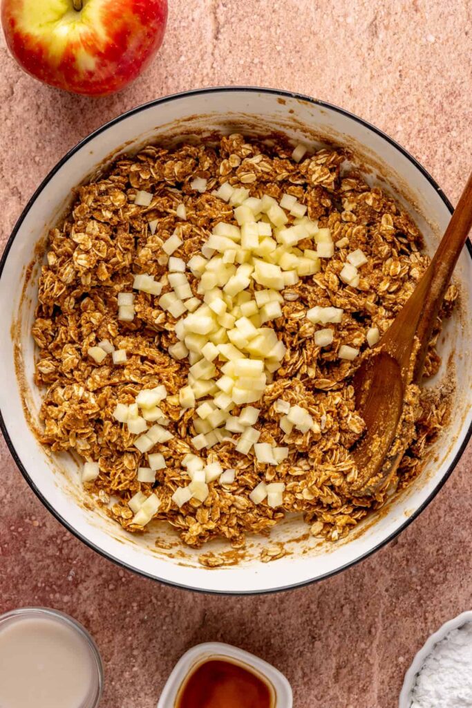 Add in the apples and mix until just combined. Cover the bowl with cling wrap and transfer to the fridge. Chill for 30 minutes.