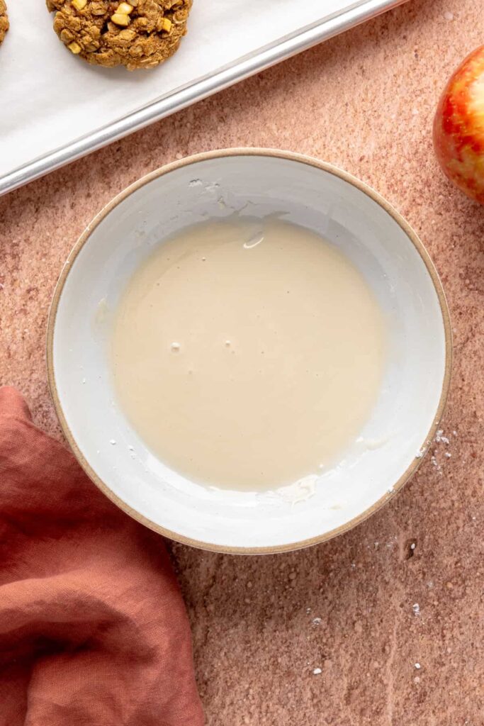 Here are a few subs for these Apple Spiced Oatmeal Cookies. You can swap ghee for unsalted butter in a 1:1 ratio. Almond flour can be replaced with oat flour (gluten-free if using certified GF oats), but you may need to add 1–2 tablespoons extra to help the dough hold together. Coconut sugar can be swapped for light brown sugar or maple sugar in equal amounts. If you prefer, you can omit the apples entirely for a simple, spiced cookie, or replace them with pears or finely chopped dried fruit (note: baking time may be slightly shorter without fresh fruit). For the glaze, you can use any milk alternative instead of almond milk depending on dairy preference/sensitivities.