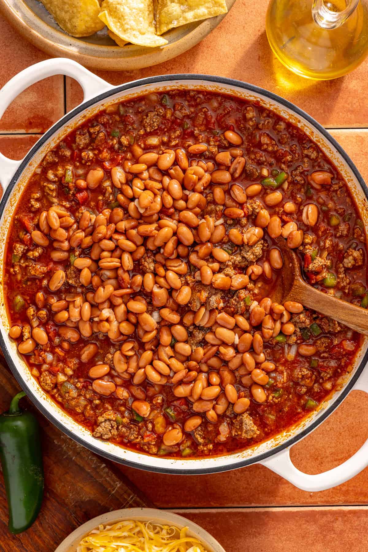 If you want an even thicker chili skillet, let it simmer a bit longer uncovered so some of the liquid cooks off naturally. You can also mash a small portion of the beans into the chili to help naturally thicken the texture. It will also continue to thicken slightly as it rests, especially after the cheese is added.