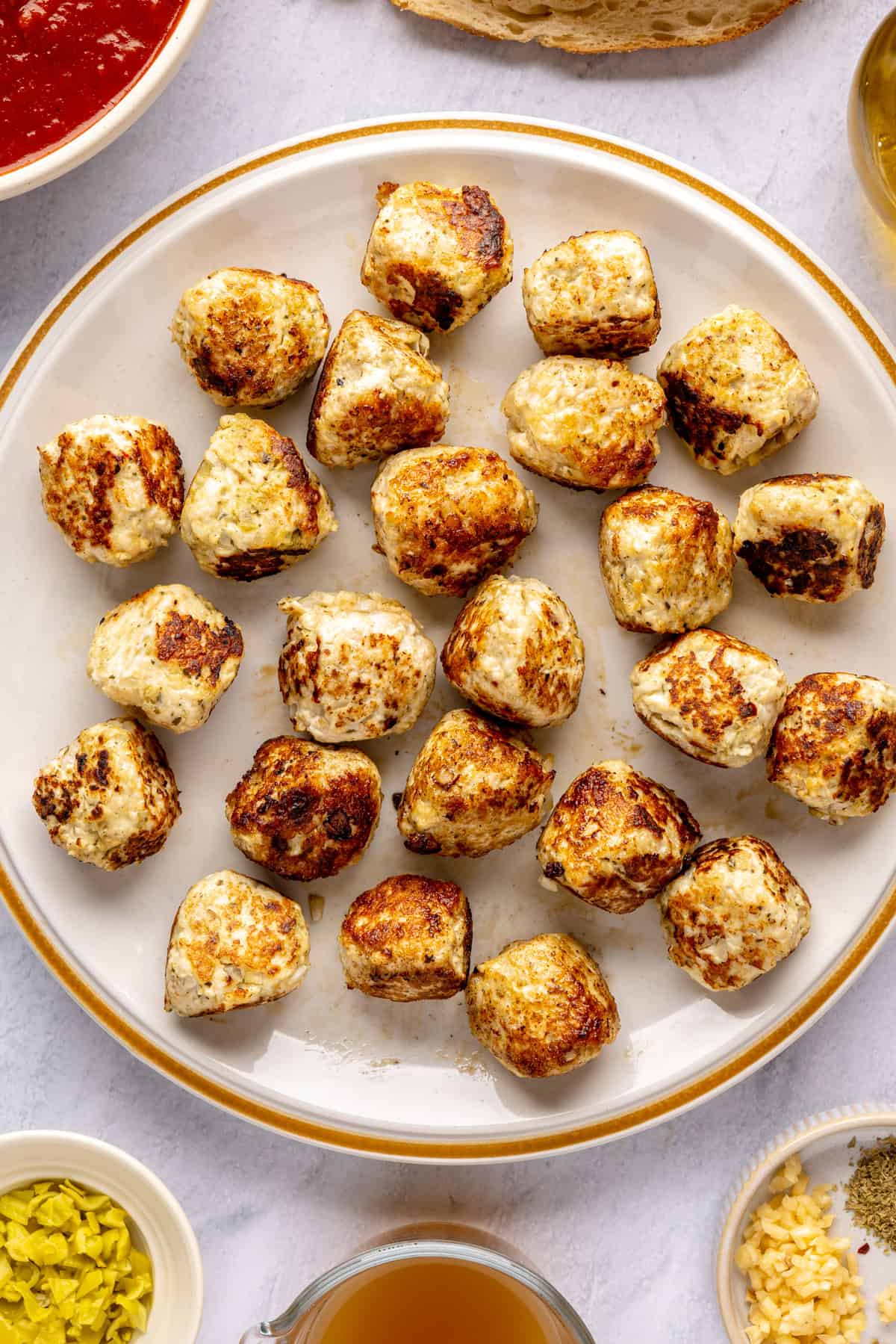 Using lean ground chicken keeps these high-protein chicken meatballs light and satisfying, while skipping the breading cuts down on unnecessary carbs and frying oil. If you’re dairy-free, swap the parmesan for a mix of breadcrumbs and nutritional yeast, or try finely shredded goat cheddar for an easier-to-digest option.