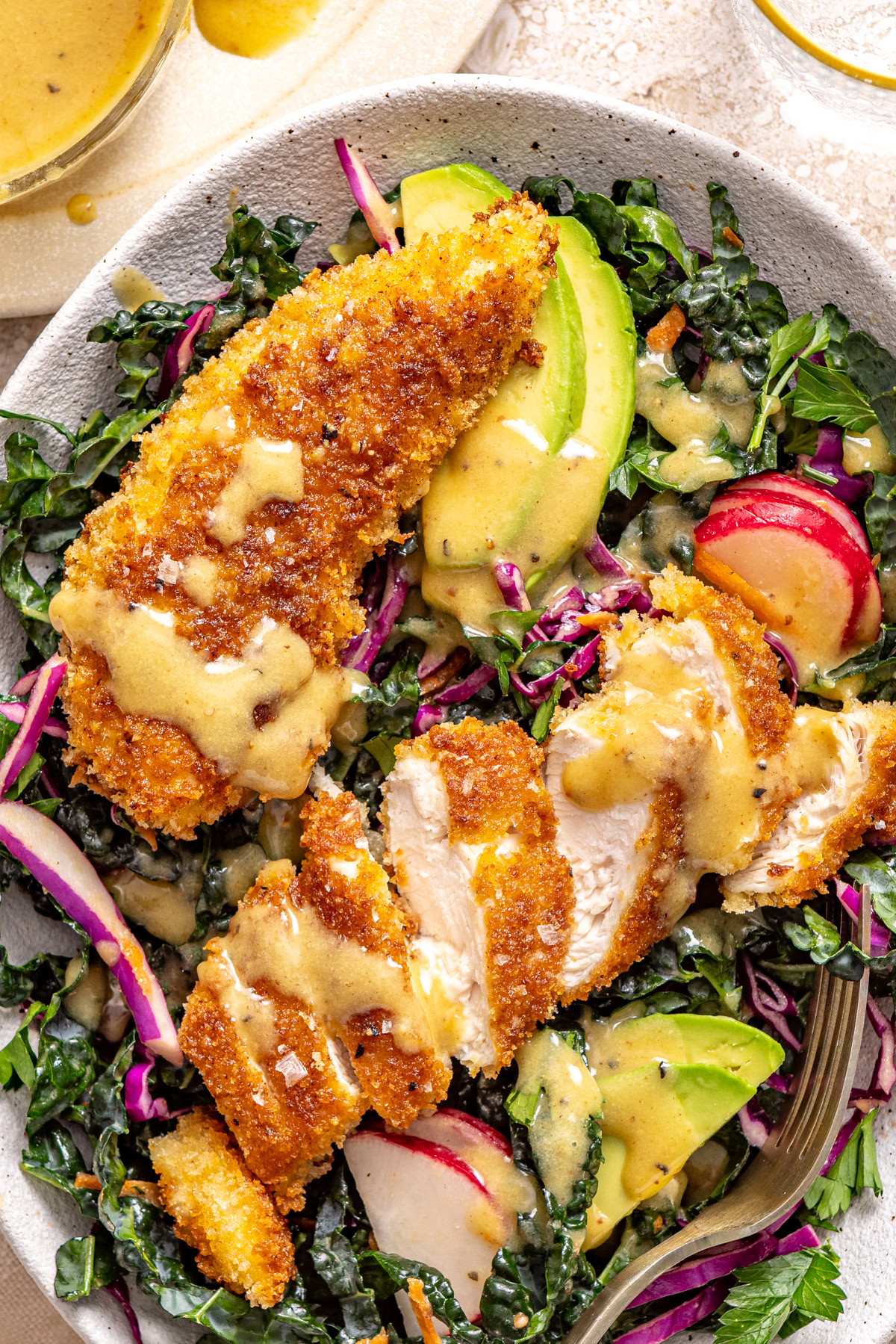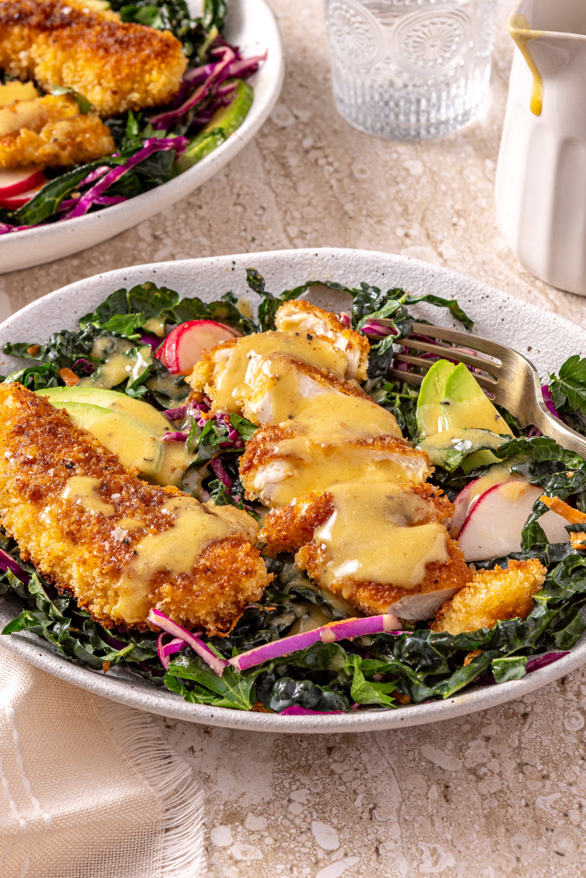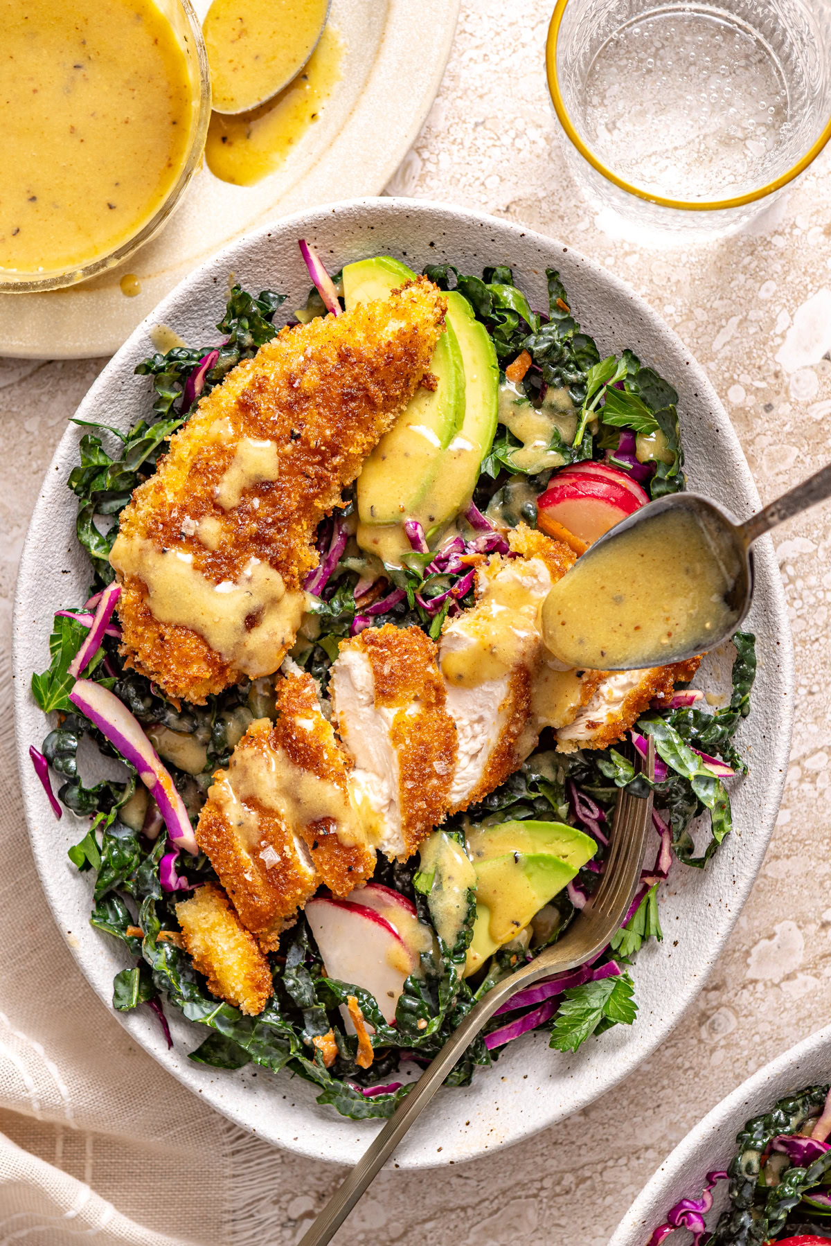 How To Make Crispy Honey Mustard Chicken Kale Salad