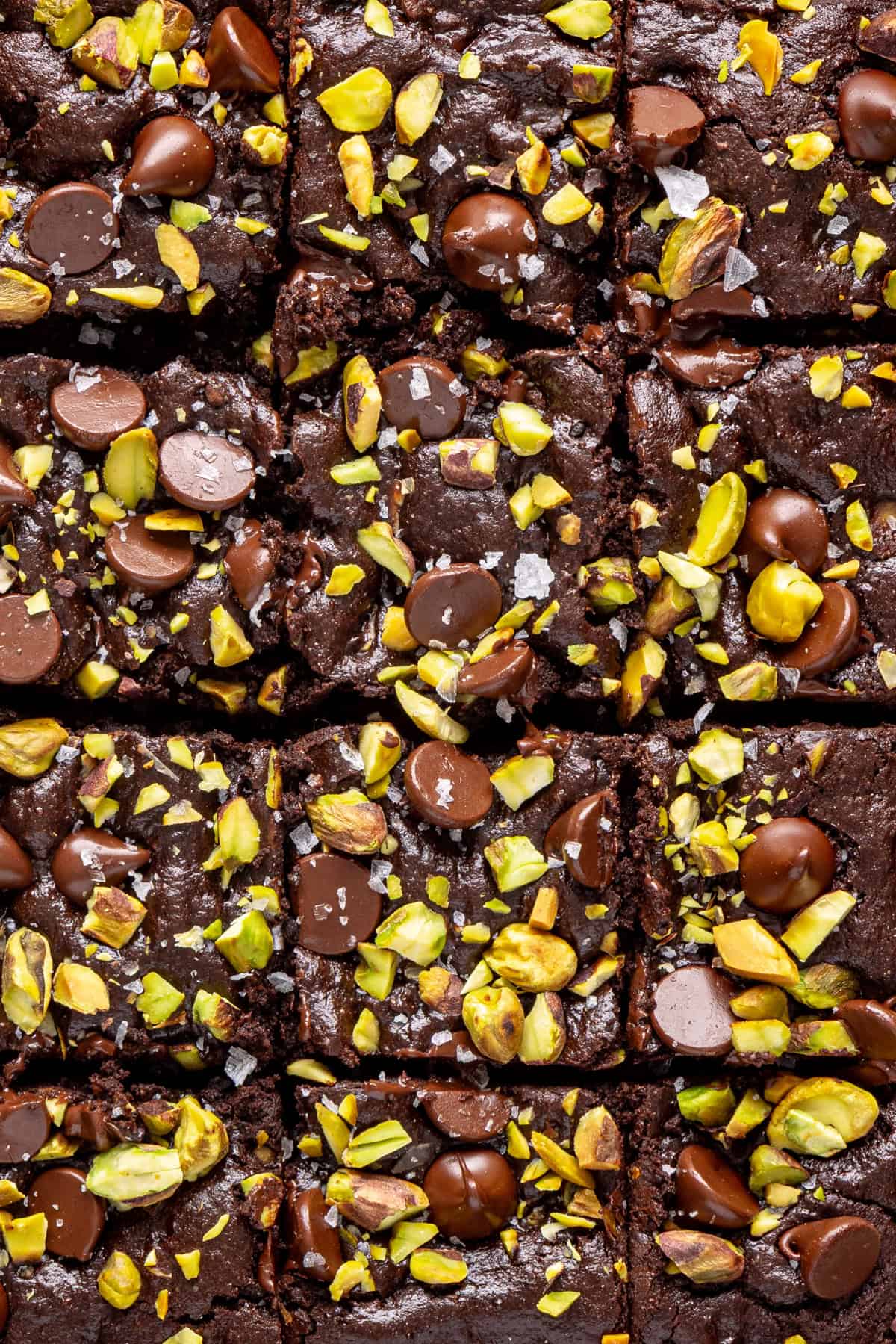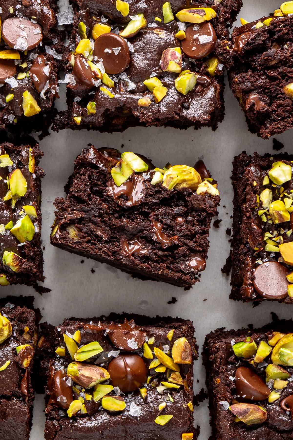 Fudgy Pistachio Brownies with Dark Chocolate and Pistachios