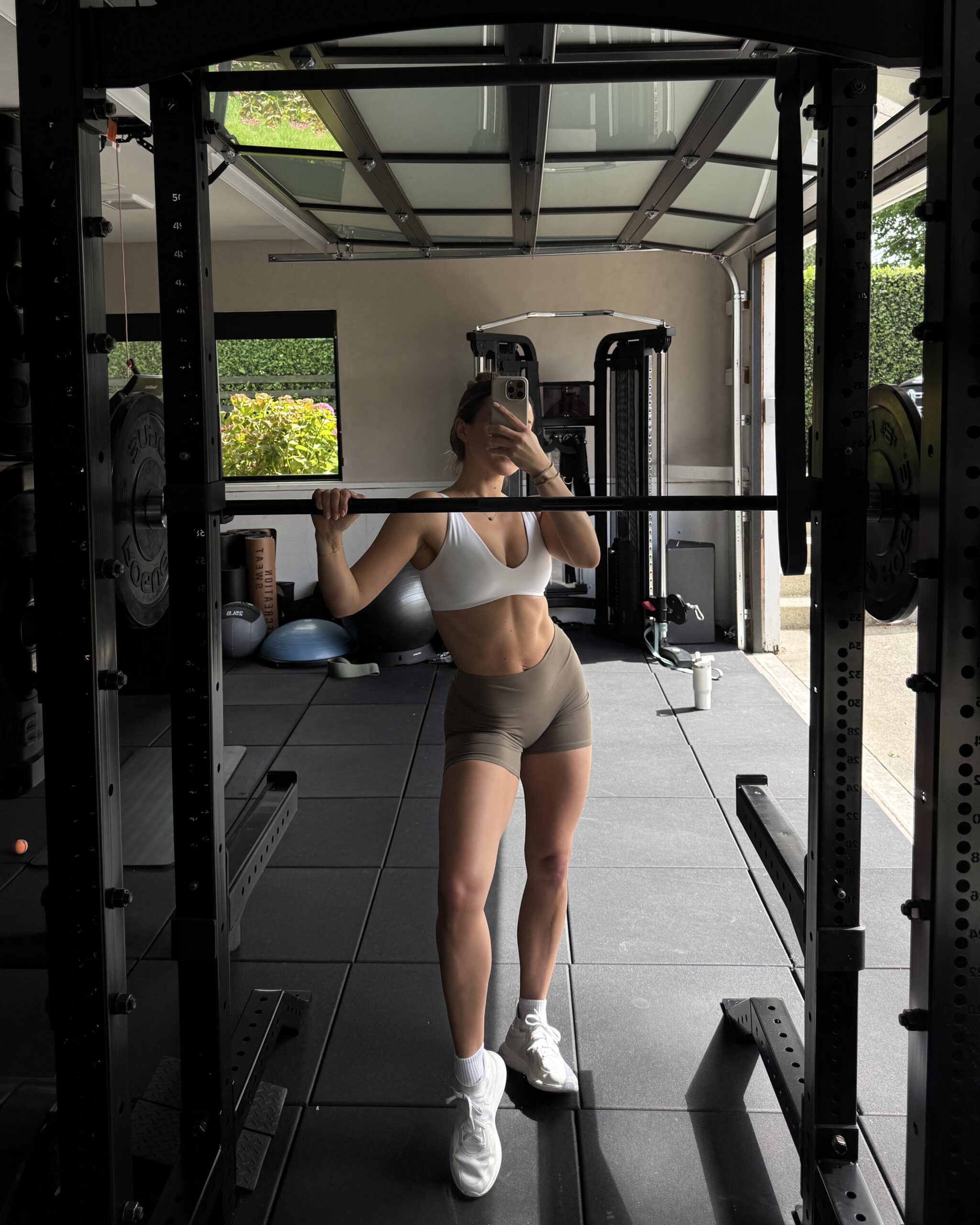 I moved when I could: stroller walks, random dumbbell circuits, or a few squats and stretches during nap time in our gym. It wasn’t perfect, but it kept me connected to movement. And the thing is, I didn’t feel like I was “falling behind.” I was just living real life, like so many new mamas are.