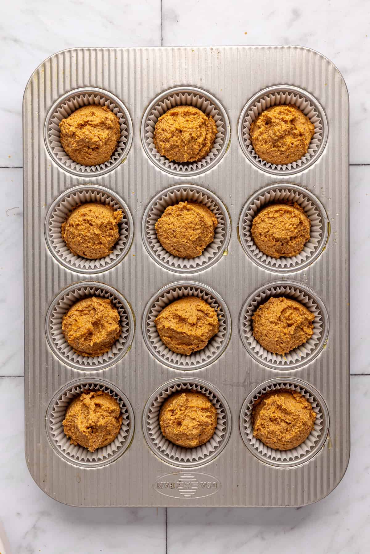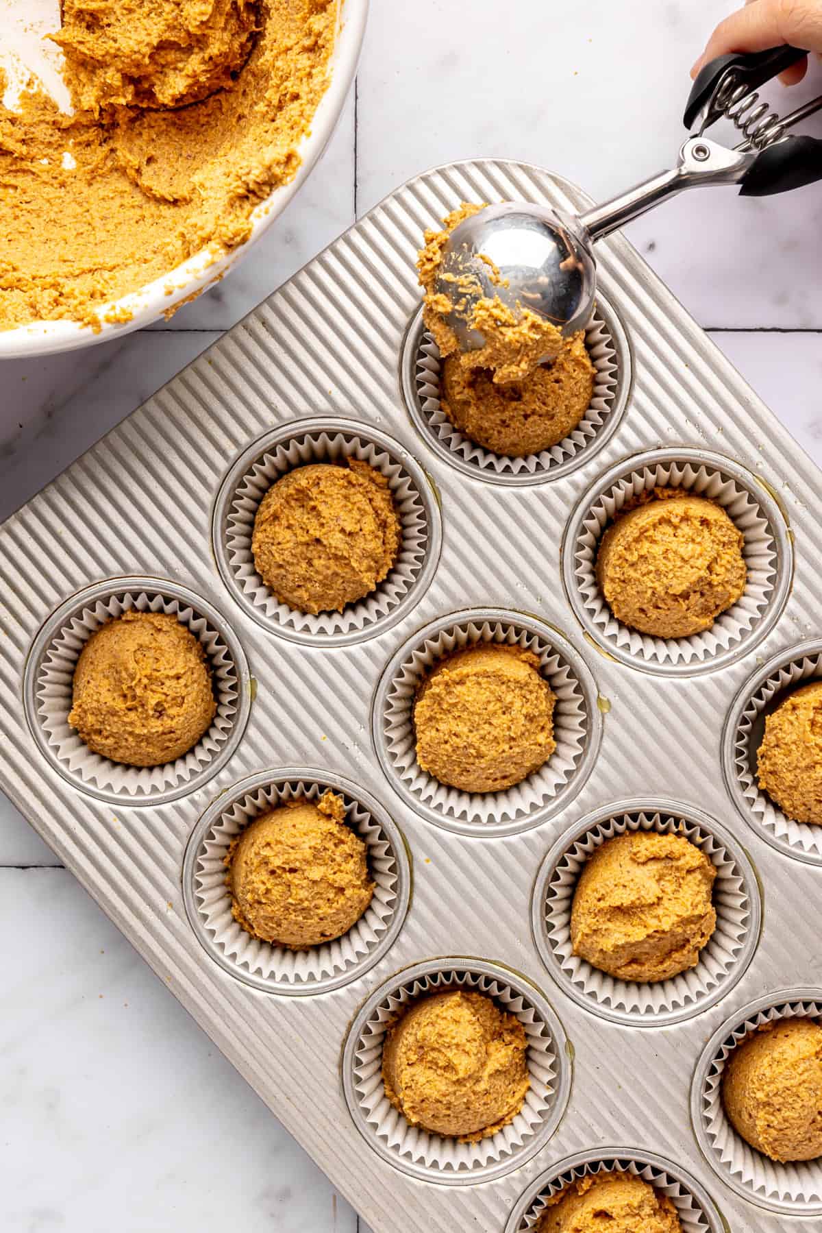 Note: Using a full can of pumpkin makes these extra moist, which is why they need a longer bake time than traditional muffins.