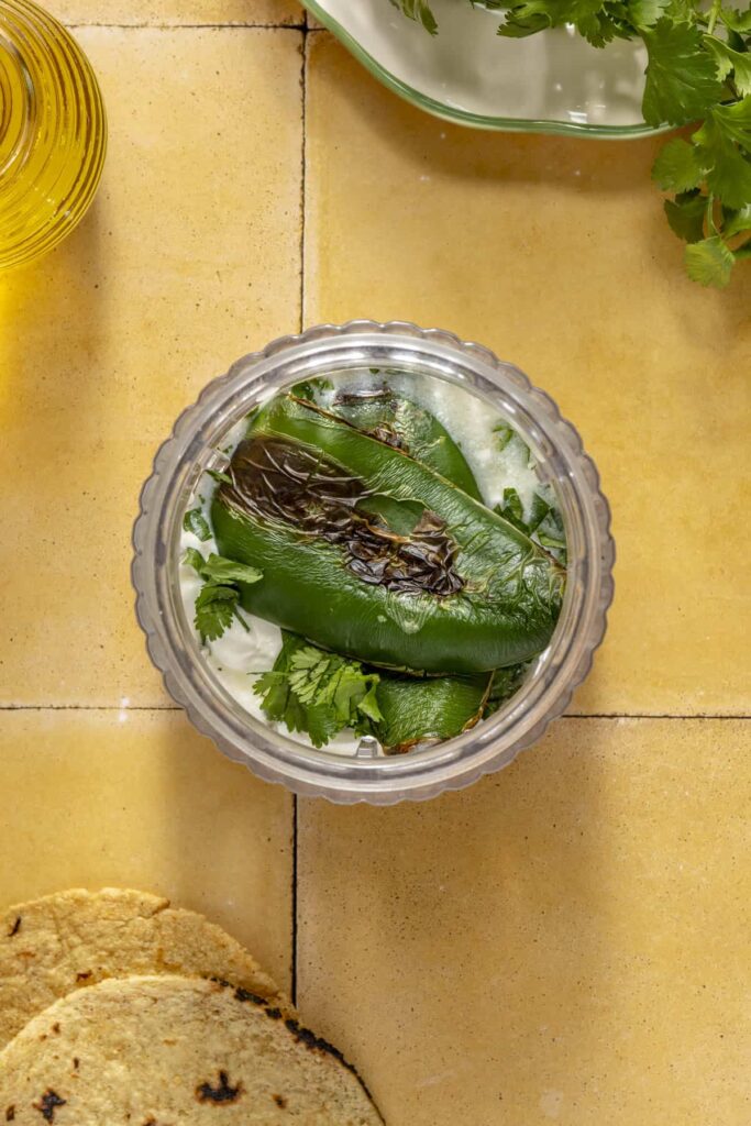 The charred jalapeño crema is creamy, cooling, and made with dairy-free yogurt, which adds gut-friendly probiotics while offering a healthier alternative to traditional sour cream (which you could also totally use too, if preferred!). Plus, jalapeños are rich in vitamin C and capsaicin, which may help reduce inflammation.