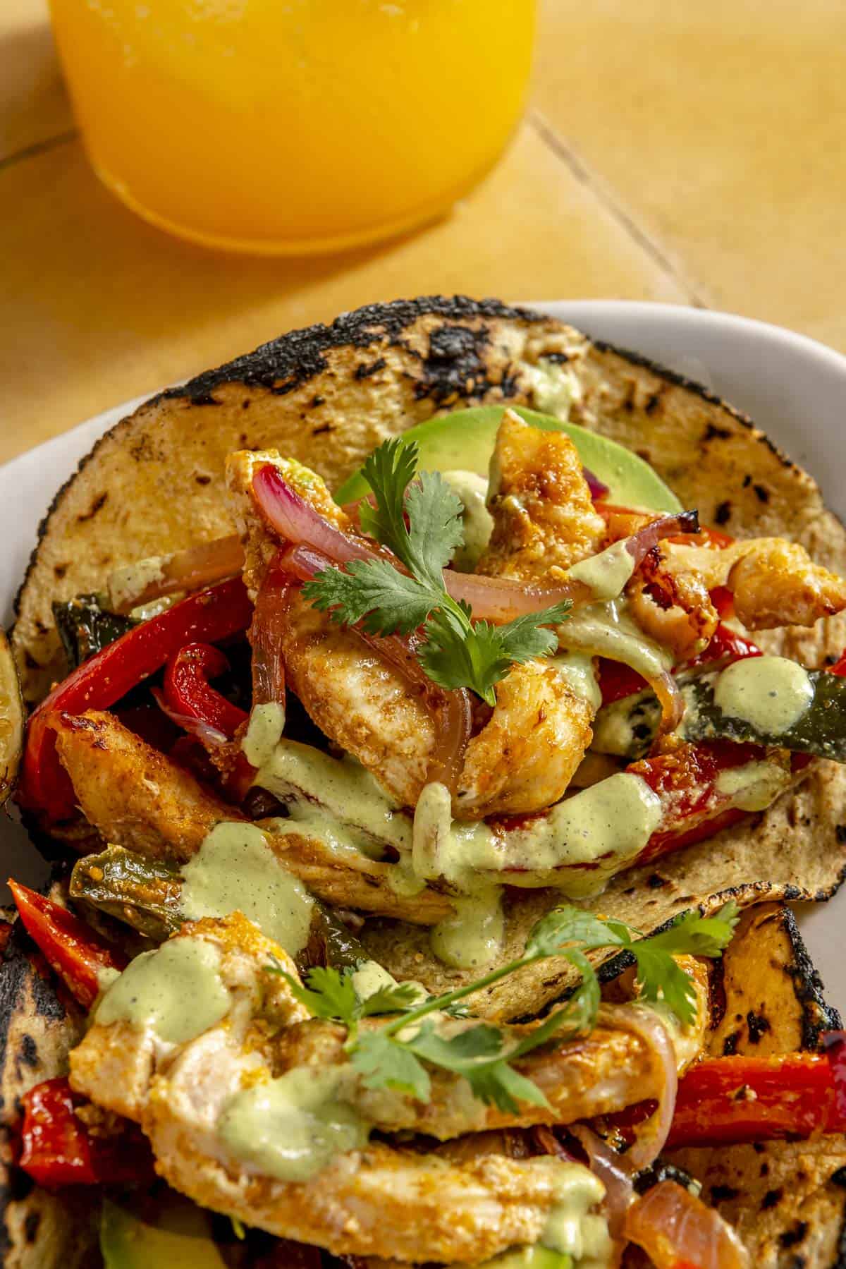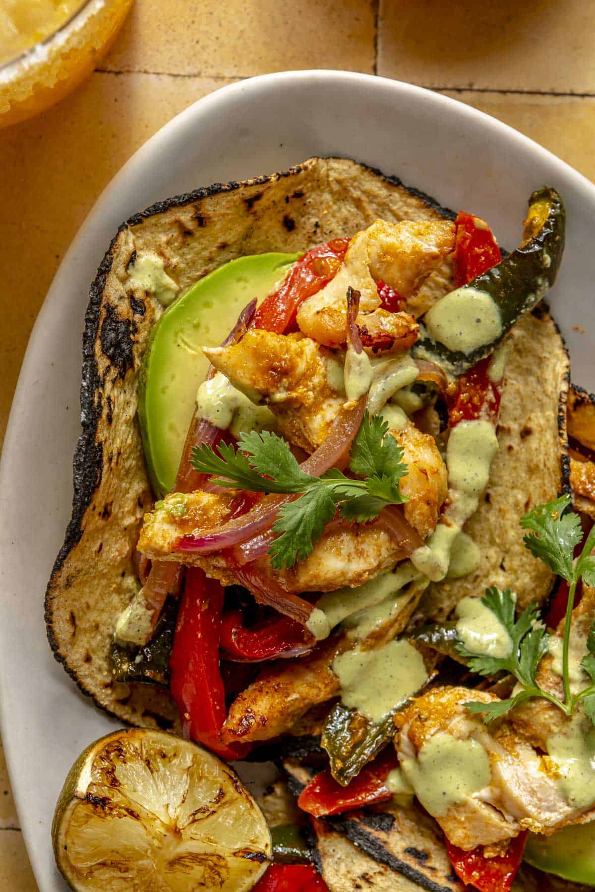 This version is made with a bright citrus marinade, poblano and bell peppers, and a smoky, dairy-free charred jalapeño crema that takes it to the next level (option to make with sour cream if dairy is not a concern!). It’s a balanced, protein-packed meal that’s also gluten-free (as long as you serve with GF corn tortillas or lettuce cups), making it a great option for a variety of lifestyles.