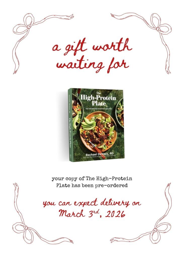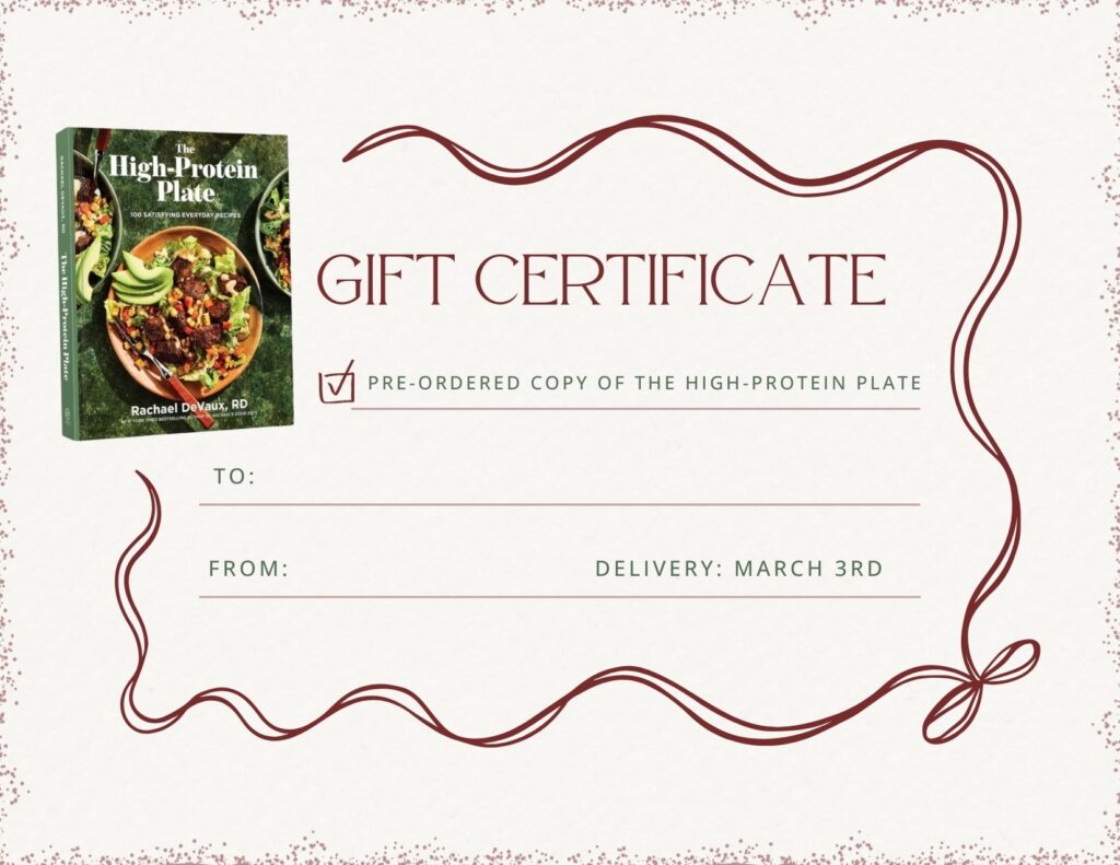 My new cookbook, The High-Protein Plate, is available for pre-order now but will officially be available on March 3rd. I’m so excited to gift this cookbook during the holidays, and I wanted to share the cutest cookbook-inspired gift basket centered around the cookbook. PLUS, I created a few printable cookbook gift coupons to give in place of the book (find those below!).